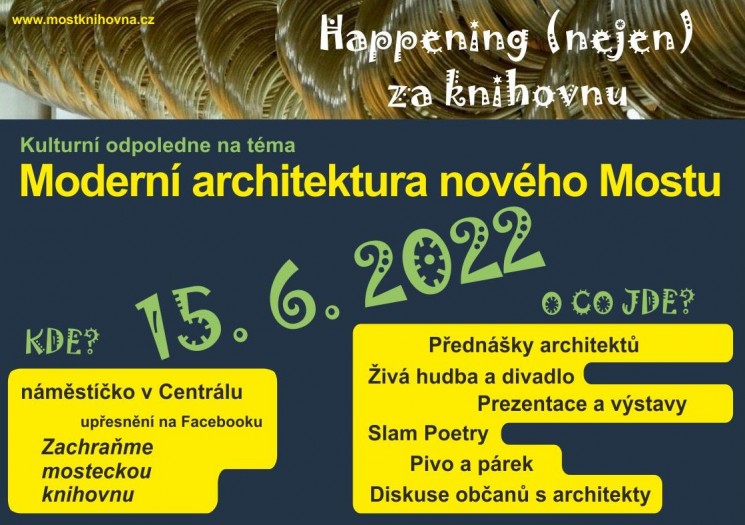 Připravujeme kulturní odpoledne na téma moderní architektury nového Mostu pod názvem „Happening (nejen) za knihovnu“.
