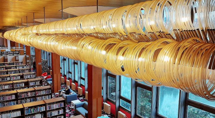 Knihovna se podle něj vymyká užitými materiály, multifunkčností, přirozenou světelností, dvěma atrii a velkorysými prostory, které slouží i pro kulturu, vzdělávání, galerijní činnost a komunitní setkávání. Z uměleckých děl je dominantou 63 metrů dlouhý lustr od proslulého skláře a výtvarníka Vladimíra Procházky.